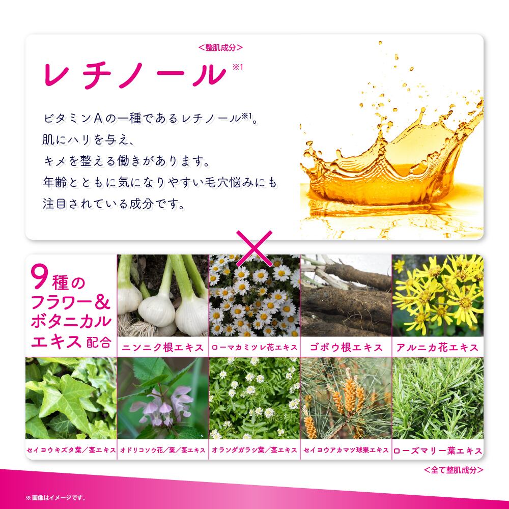 *1 2019年7月~メーカー出荷 *2 当社従来品比 *3 角質層まで <整肌成分>※1 レチノール ※2 ニンニク根エキス、ローマカミツレ花エキス、ゴボウ根エキス、アルニカ花エキス、セイヨウキズタ葉/茎エキス、オドリコソウ花/葉/茎エキス、オランダガラシ葉/茎エキス、セイヨウアカマツ球果エキス、ローズマリー葉エキス