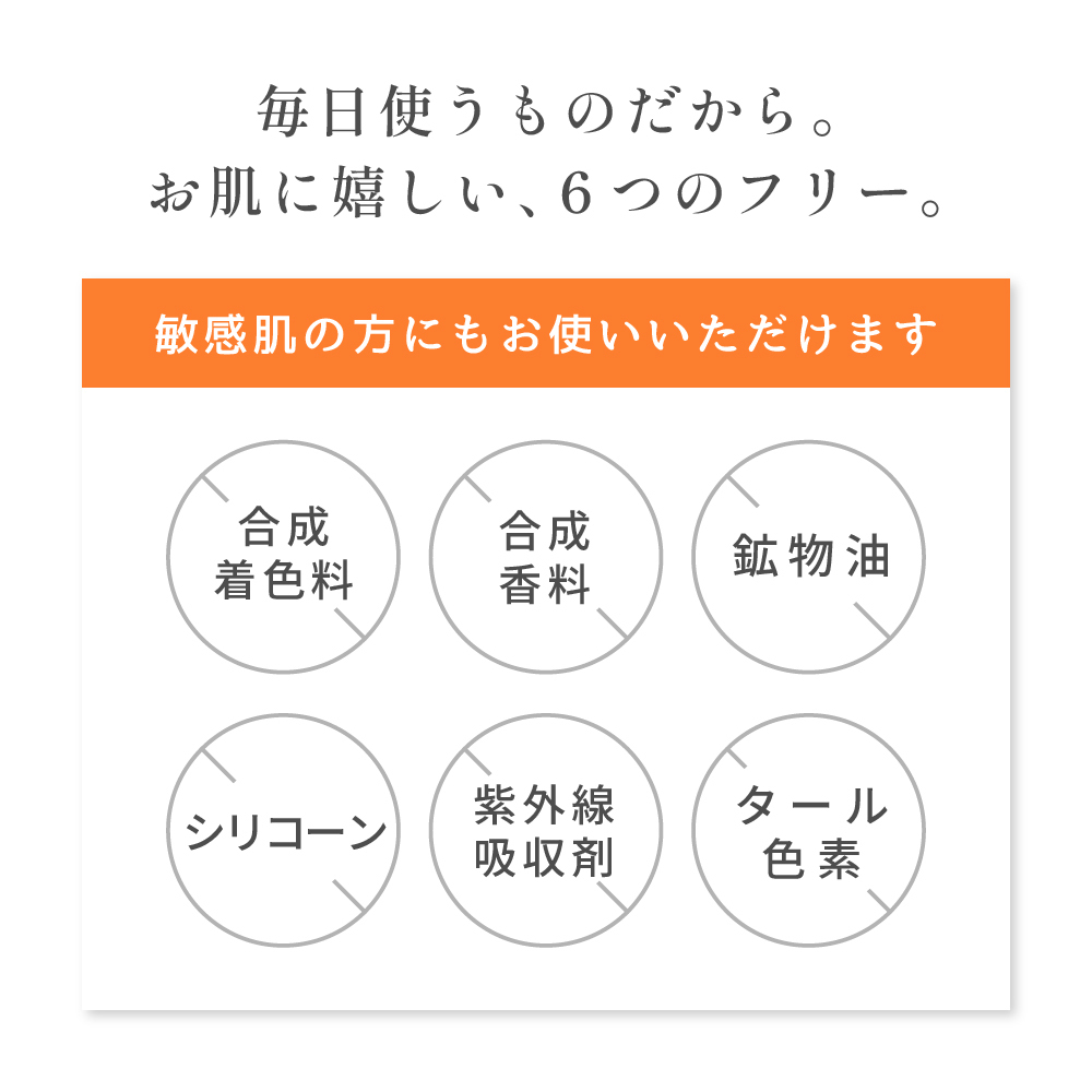 「不使用|合成着色料・合成香料・鉱物油・シリコーン・紫外線吸収剤・タール色素」