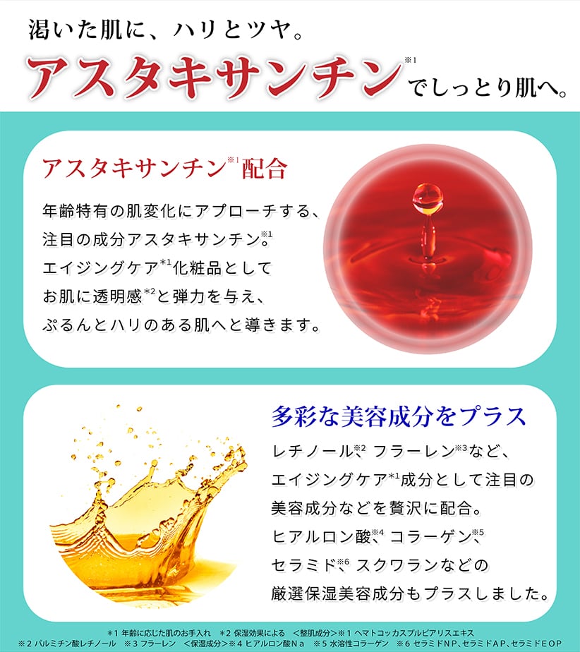 年齢特有の肌変化にアプローチする、注目の成分アスタキサンチンを配合。